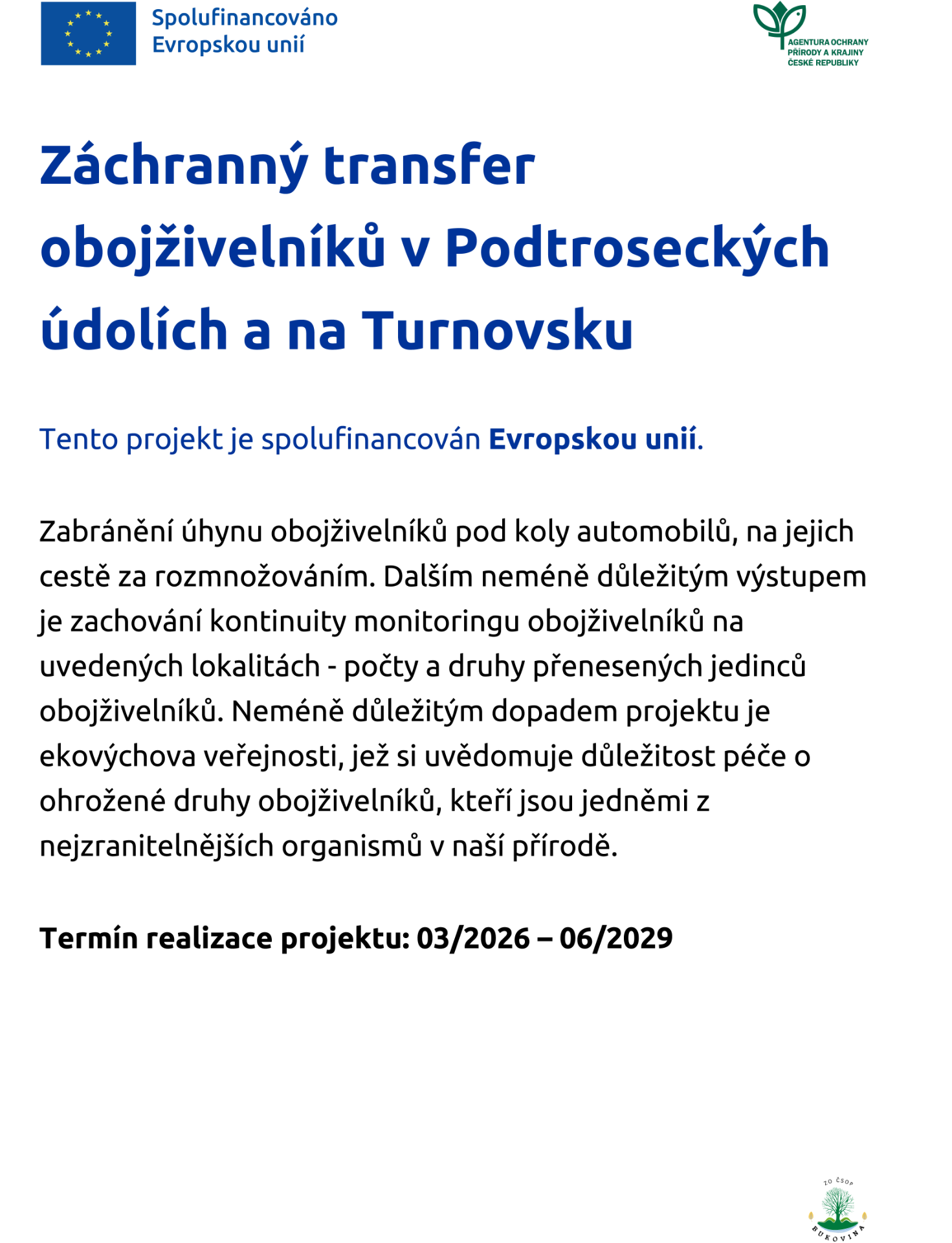 Letos přenášíme obojživelníky přes rizikové úseky komunikací na pěti lokalitách: Malý Rohozec, rybník Nohavice v Bělé u Turnova, Rokytnický rybník, Vidlák a Krčák, v celkové délce zábran 795 m. Zpravidla za jednu sezonu přeneseme přes deset tisíc obojživelníků.